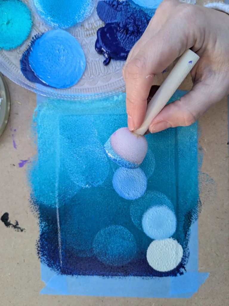 Ich leite dich an und zeige dir, wie du die tanzenden Punkte auf Papier bringst und eine stimmige Farbharmonie erstellst. Zur Umsetzung benutzen wir runde Schwammpinsel, dadurch kannst du dich ganz auf deine Farbkomposition konzentrieren und musst dir keine Sorge machen, dass deine Punkte nicht rund werden. In meinem gemütlichen Kreativstudio kannst du dich ganz auf dein Werk konzentrieren und die Welt um dich herum vergessen.
