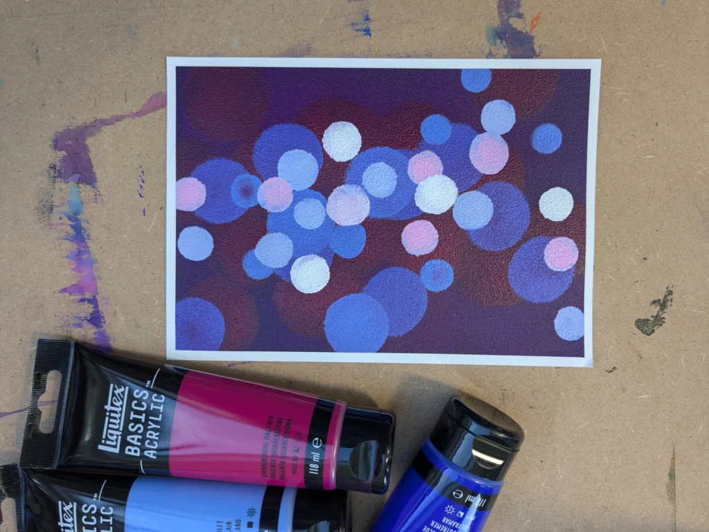In diesem Malkurs gestaltest du dein eigenes Werk im verträumten Bokeh-Stil und lernst etwas über Tiefenwirkung durch den bewussten Einsatz von heller und dunkler Farbe.